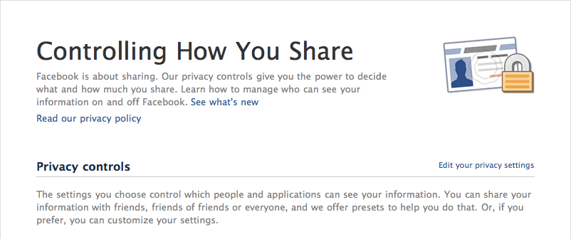 Which, for the moment, is pretty clear; at least, to me. There’s still a lot of “what happens next”up in the air, and concern over the increase in the importance of advertisers and decline in that of users citizen-members. Official Privacy Policy hasn’t been updated since 22 April, but there’s more to come; meanwhile, the Help Centre has a useful item on Privacy Updates, and a Privacy guide from which the following screenshot has been taken. A lot of which isn’t new–having been in place for weeks or months–but they have been made more explicit and brought to FBers’ attention.