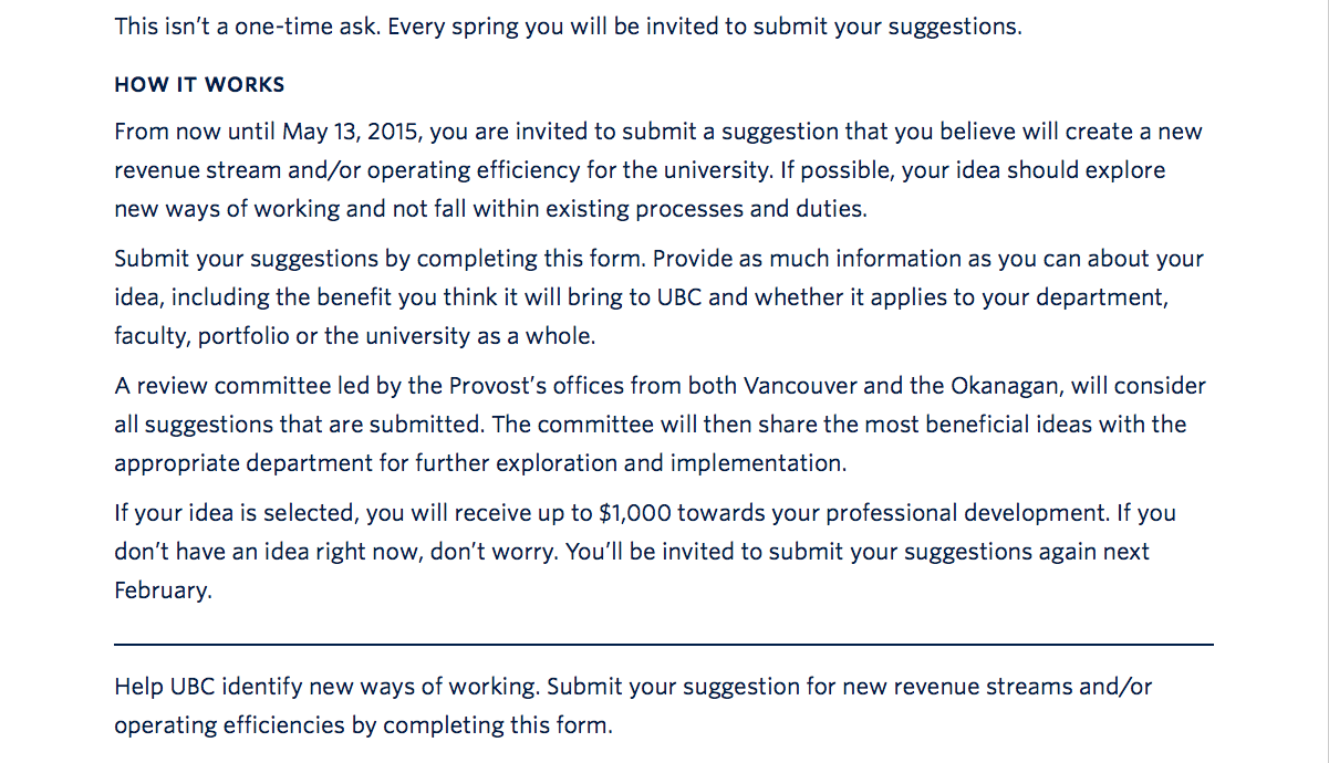 This is a direct follow-up to yesterday’s post, though reading the UBC budget news reported below preceded the writing of the former. Yesterday’s post sets the scene. Hopefully that scene-setting will be followed, as in any decent drama, by action.