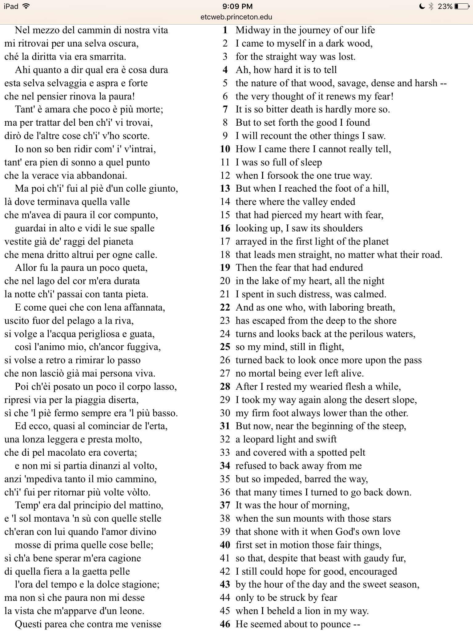 (Dante, Inferno, canto I, start).