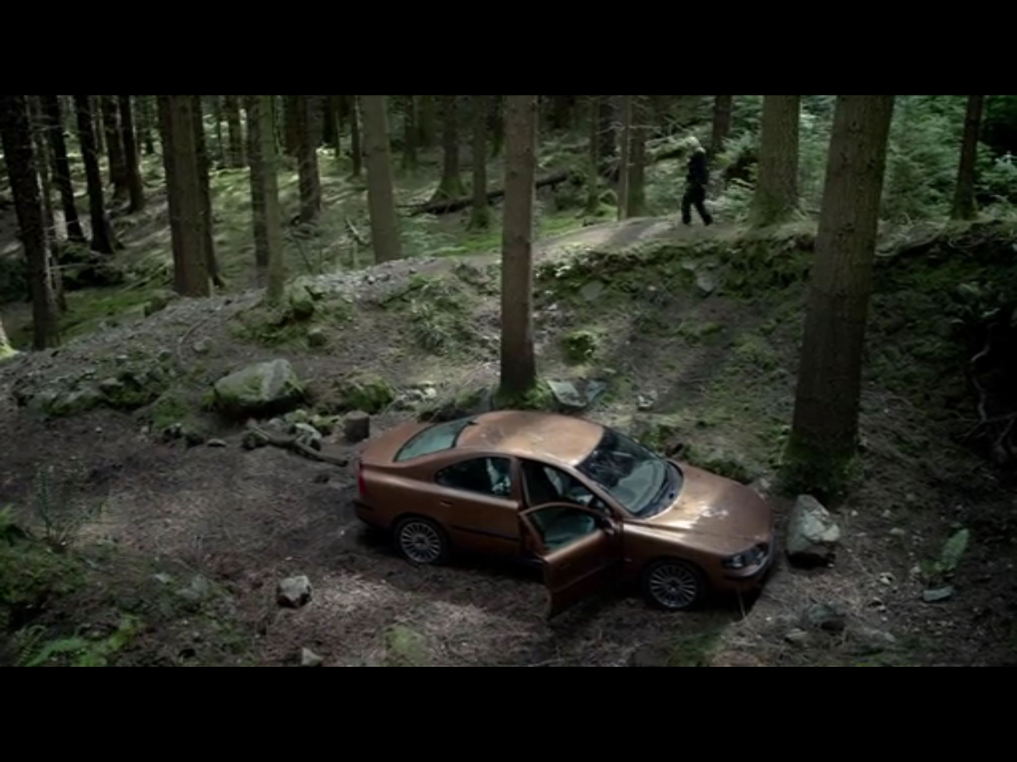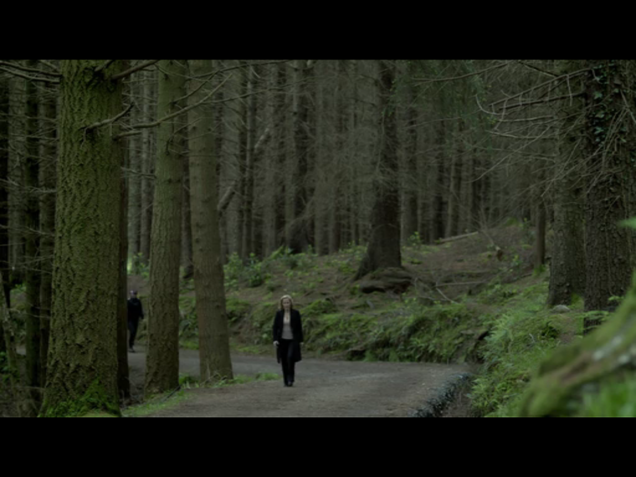 Nietzsche-ing him is more likely to be intended to goad and rile, to mess with him, mind-fucking him back. This would be in character: Gibson and Spector are after all both obsessive controllers. In mind-fucking, in theory there should be no advantage of sex or gender. It’s an even playing-field. Mind-fucking would be Gibson’s equivalent to Spector’s overpowering seductive approach; and we’ve observed her seductive techniques in operation before on three occasions: her directness is as overpowering as Spector’s different approach. Towards the end of the first season’s very first episode, Gibson approaches an attractive stranger. The start of episode 2 shifts between two nocturnal dalliances happening at the same time: Gibson and James Olson, Spector and Sarah Kay. Episode 3, the middle one of the first series, is shaped around a central scene where Spector discovers—by chance—a perfect dark place in the woods; it will be used for a first displacing art-work using a mannequin, and later in the series will become the stage for a second art-work, Spector filming Stagg in her first living tomb.