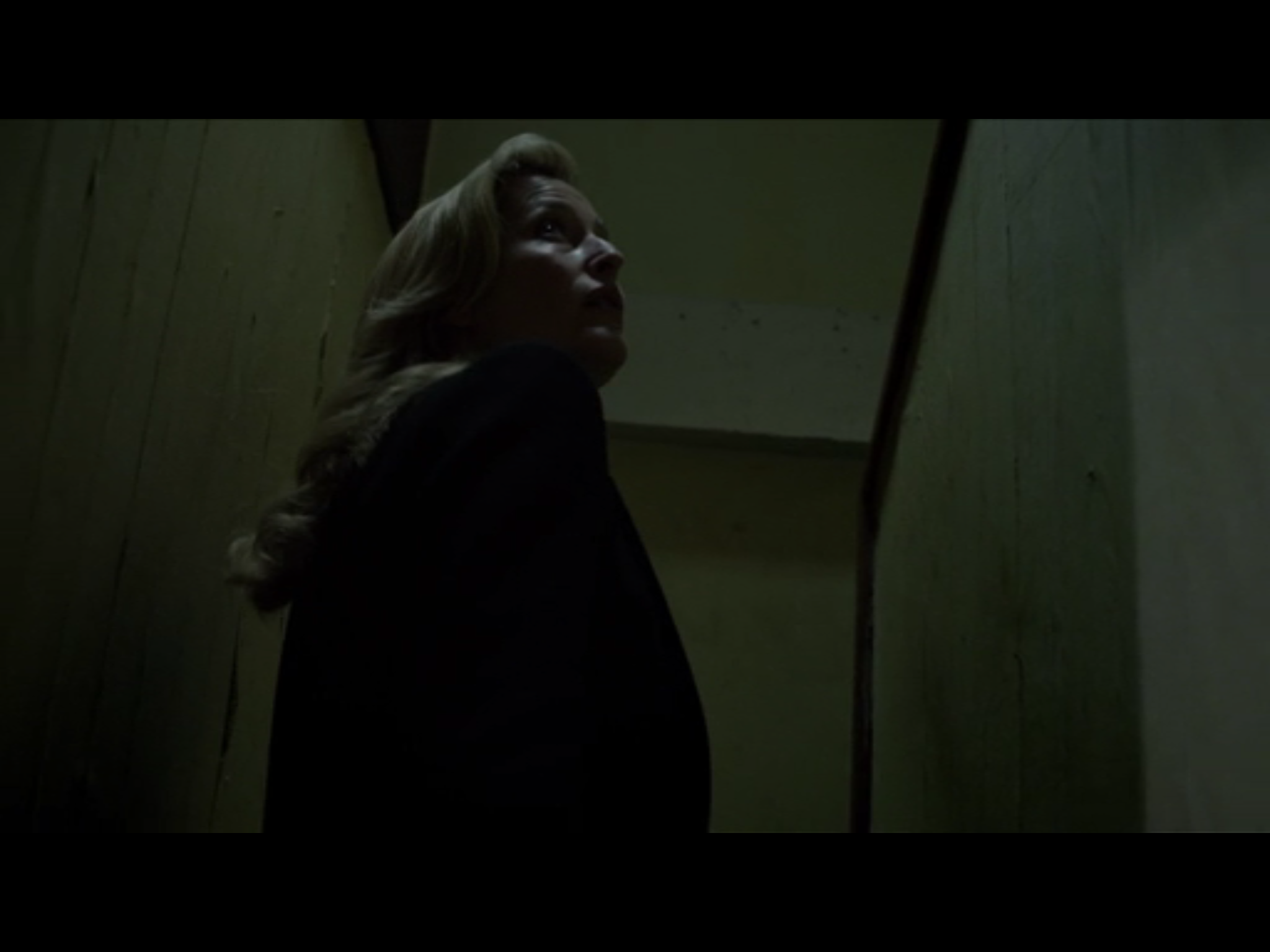 That shaft is juxtaposed with the other illumination from the light-source of Spector’s film, a light created by him, an internal light; see what happens when Gibson realises this, moves away from looking at the crime scene—the more expected interest for a criminal detective—to place herself in the position of the criminal, to position herself as him, to see as him.