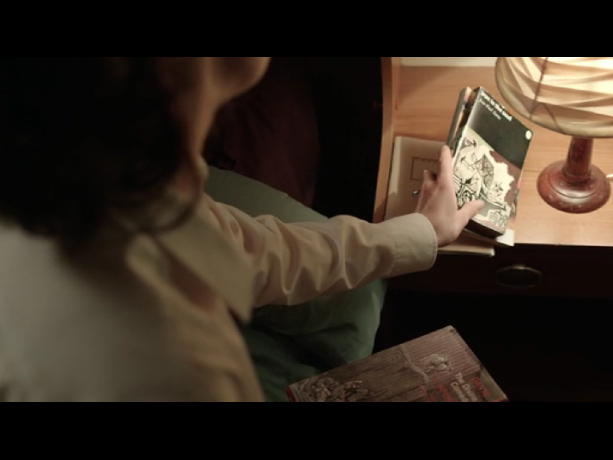 Remember how there were four books on the bedside table?