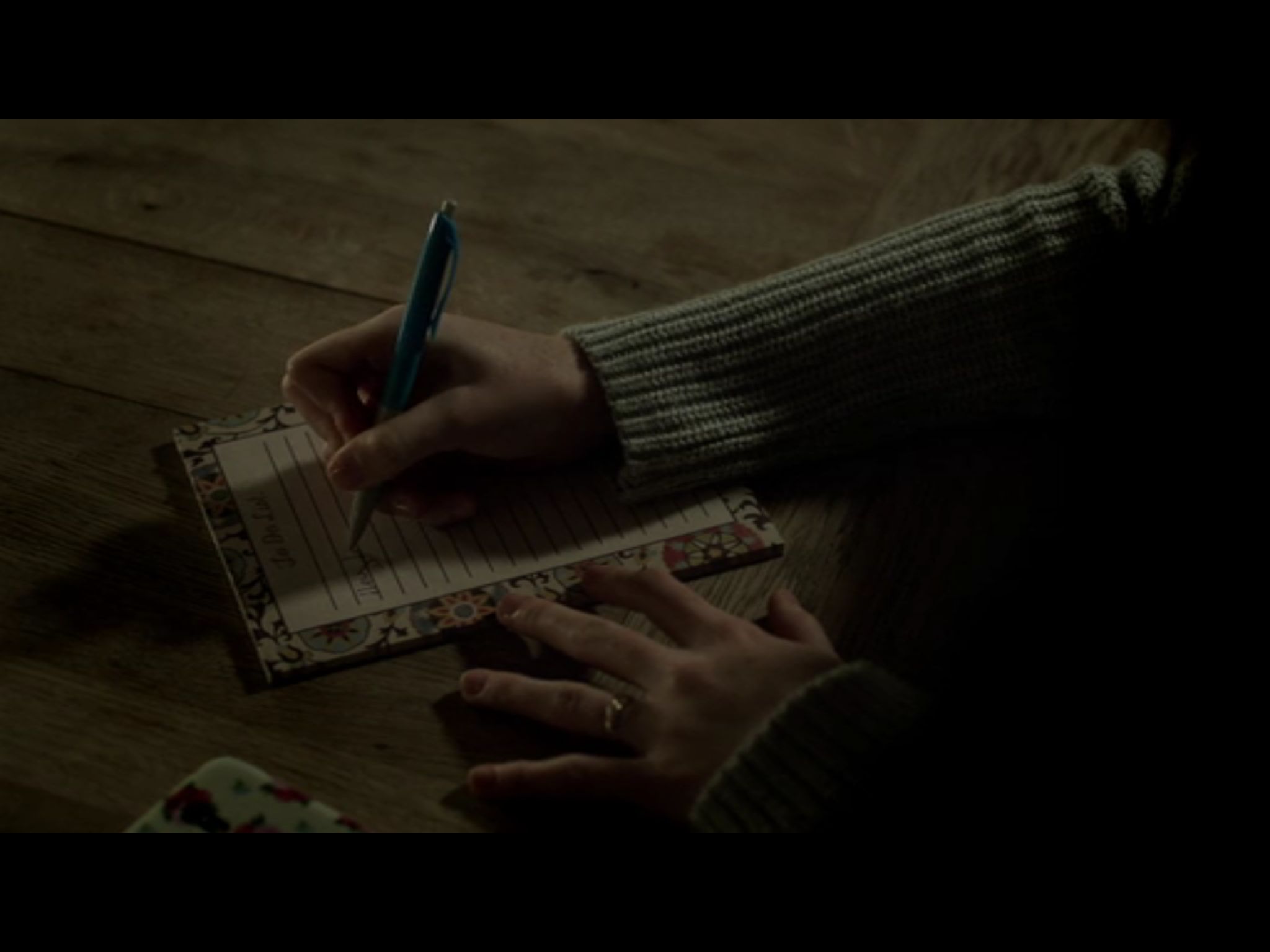 That’s from the start of season 1’s middle episode: Spector with his book, that sketch-book and journal and commentary that accompanied his more corporeal corpus; his Vita nuova. The start of that episode alternated between Spector and Gibson in their nocturnal pleasures, and—from episode 1 up to that moment with the book, ending when it is gently closed and cloth around it tied neatly—we’ve now seen through a complete Spector project: from finding an idea and research, through composition and performance, to reading and rereading and further commentary afterwards, a precious moment to be savoured forever in The Book of Spector.