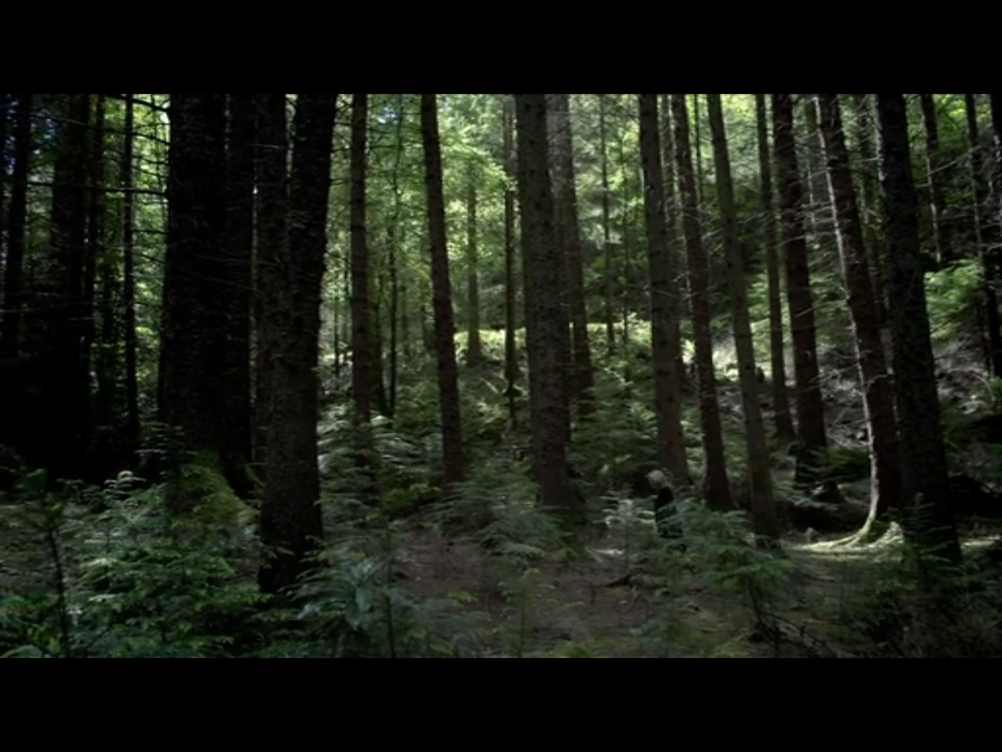 Nice use of helicopters and their sound and circling: birdlike above the trees. In a fine moment slightly earlier, Gibson and Spector look up separately and watch the helicopter through latticed branches. Steady repetitive circling combined with a steady sound slow everything down and meditatively focus attention. There’s no other sound, no sound-track.
