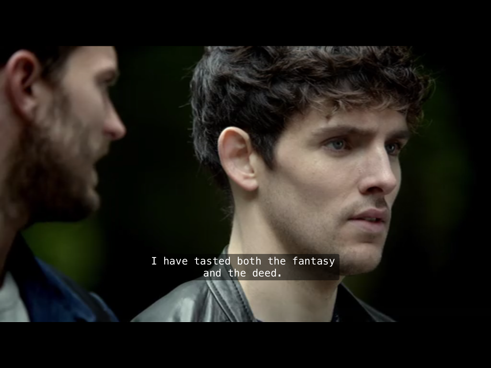 (“Medievalising The Fall (2): further intertextuality” suggests some further matiere via casting intersections bringing two texts together. Could feed into ruminations on hypothetical continuations. Woods, caves, love-triangles, grey areas between close friendship and various other relationships, dark desires, nocturnal deceptions, foretellings and tragic taboos, travels through time and space and the extra-dimensionality of intertextuality, adventuring away anyway despite it all: Merlin has it all. Maybe it’s time for some /slash/ fan fiction… )