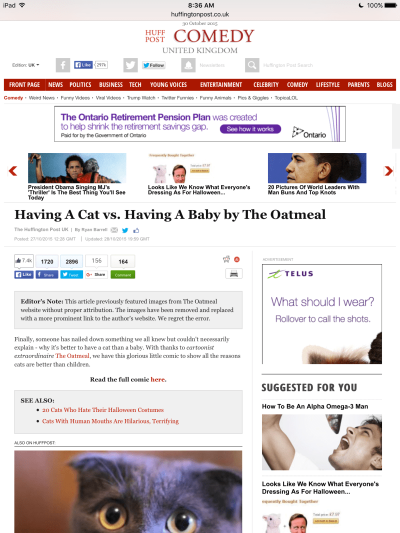 Reference: Matthew Inman. “Having a Baby vs. Having a Cat.” The Oatmeal (2015). http://theoatmeal.com/comics/baby_vs_cat.