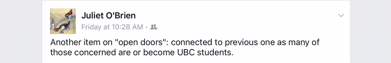Another item on “open doors”: connected to previous one as many of those concerned are or become UBC students.
