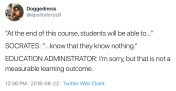 Teaching, and our translation to teaching and learning in a virtual environment, now as ever is not about selling or sucking up to those in a position of power: faculty, management, or students. Or all three at once, if you’re very lucky. And that’s just the poor students. (Students: faculty are with you in suffering. Let’s suffer together.)