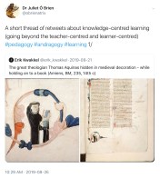 Knowledge-centred learning doesn’t always immediately look like (active, interactive, transactive, transformative) learning-centred learning. But it’s what’s going on whenever you see a scholar reading quietly, or looking out the window, or eyes closed.