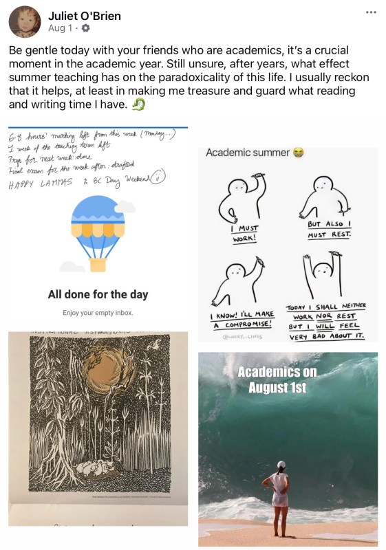 Summer teaching is over. Exams marked, final grades submitted, a last parting message (au revoir rather than adieu) posted on Canvas yesterday morning, Canvas dashboard edited to remove the courses that just ended and move in the new ones, institutional email folders archived. I don’t feel a need to think about next term yet: my courses are multiple-section ones designed and coordinated by other colleagues, and it’s testament to my trust in them that I feel comfortable and relaxed. That’s a rare thing at this time of year. So, at last, I’m catching up with writing.