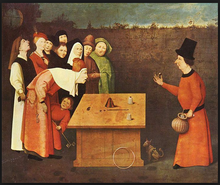 attrib. Gielis Panhedel, previously attrib. Hieronymus Bosch or his workshop, The Conjurer (c. 1502). Musée municipal de Saint-Germain-en-Laye.